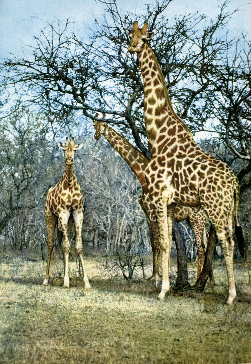 Семейство жирафов имеет богатое прошлое: возникнув в раннем миоцене из оленеподобных копытных, оно достигло расцвета в позднем миоцене и особенно в плиоцене, т. е. около 10 миллионов лет назад. Ископаемые жирафовые были представлены несколькими родами (например, Ра-leotragus, Giraffokeryx, Orasius, Samotra-gus) и населяли Европу, Азию и Африку. Многие из них отличались гигантскими размерами и могучим телосложением (род Helladotherium). В плейстоцене большинство жирафовых вымерло, и лишь два вида этого семейства, относящихся к двум самостоятельным родам, сохранились в Африке до наших дней.