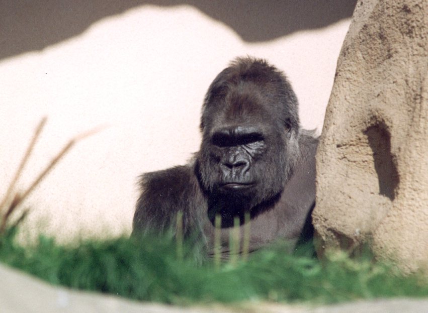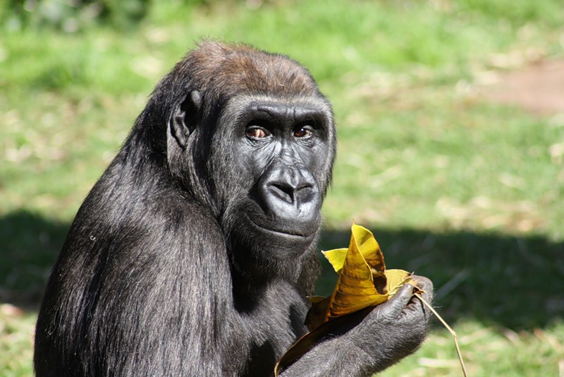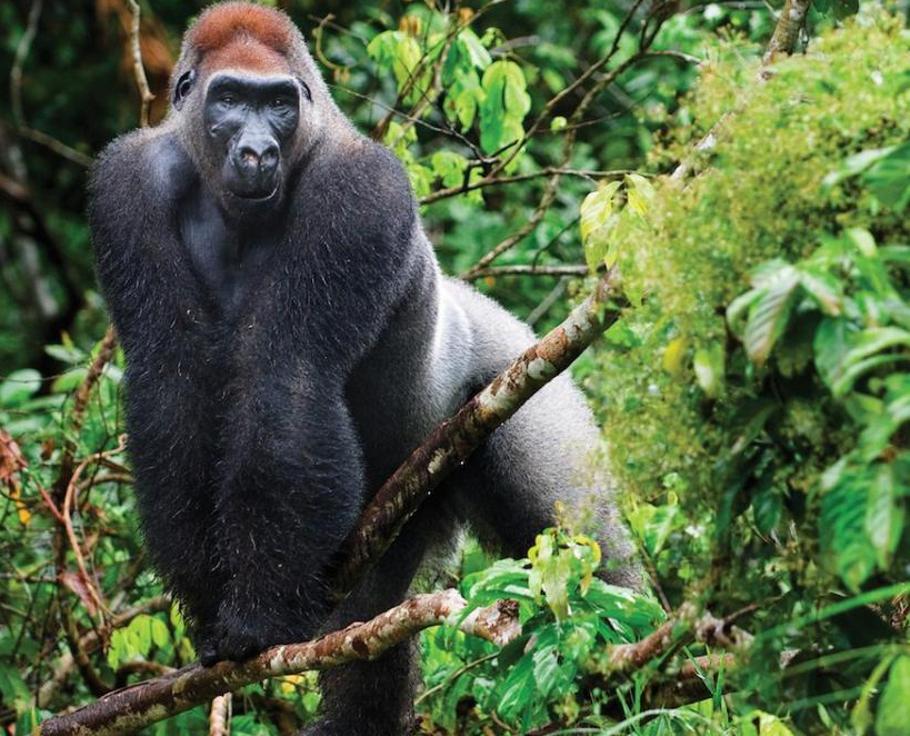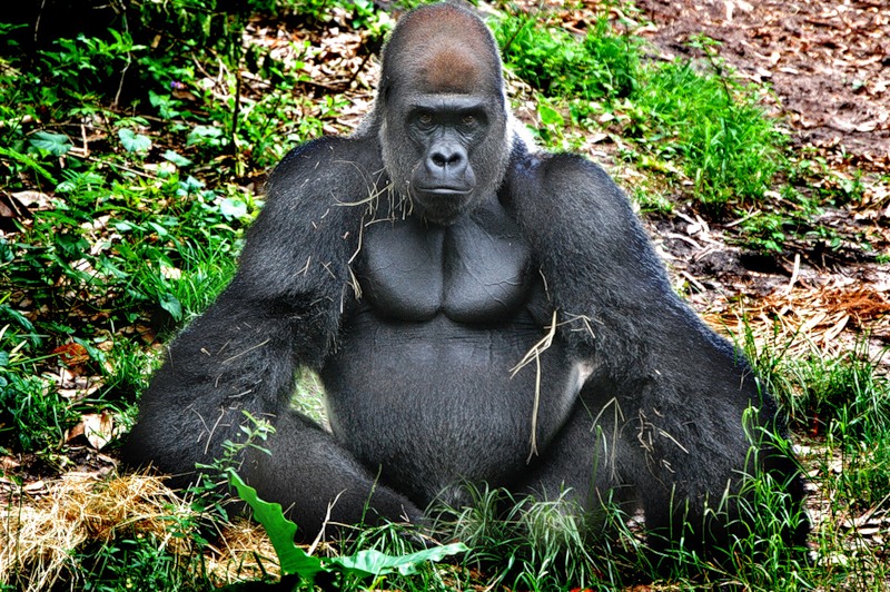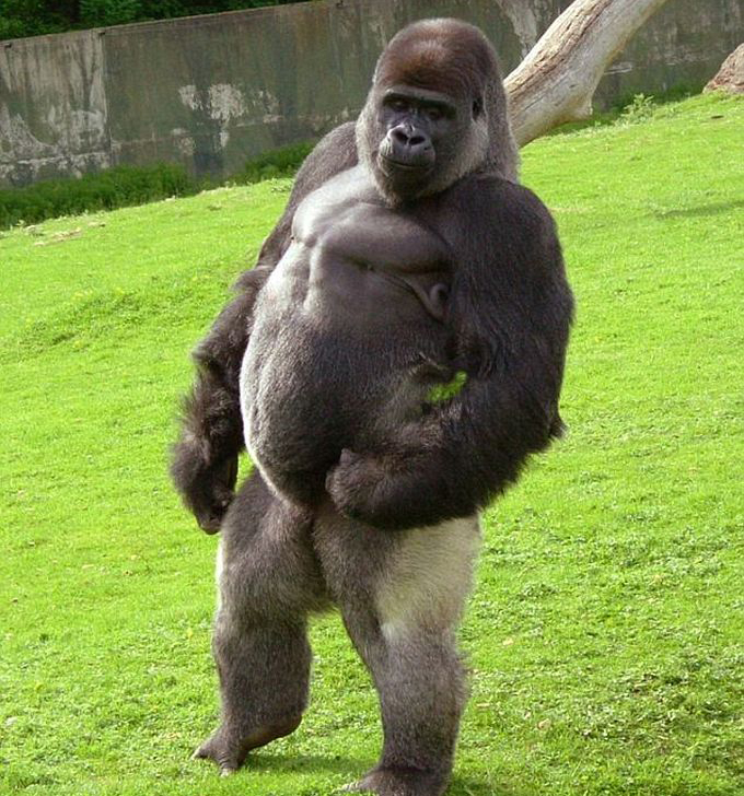 Западные гориллы несколько меньше по размерам и светлее по окраске, чем восточные гориллы. Лоб коричнево-желтоватого или серо-желтоватого цвета. На носу расположен нависающий наконечник. Хвост отсутствует. Ноздри большие. Глаза и уши маленькие. Волосы тёмные, покрывают всё тело, за исключением лица, ушей, рук и ног. На спине волосы с возрастом выпадают. Шкура чёрная и блестящая практически от рождения[1]. Руки с большими ногтями и большими пальцами. Гориллы довольно часто стоят на ногах, однако ходят, оперевшись на четыре конечности.