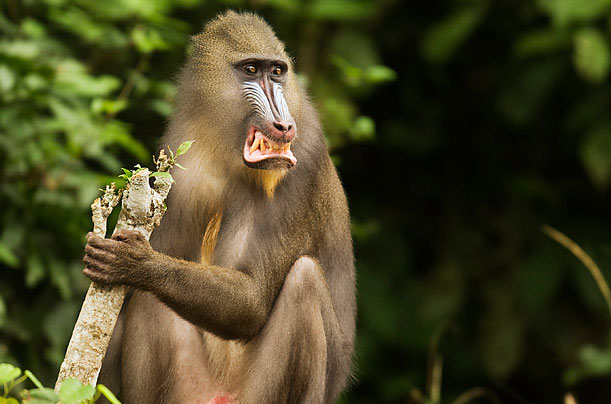 Окрас мандрилов — один из самых ярких и разноцветных среди приматов и вообще млекопитающих. Костные борозды, тянущиеся вдоль носа, окрашены в голубой или синий цвет. Нос — ярко-красный, по бокам лица и борода — из белых, желтоватых, иногда оранжевых, волос. Шерсть на туловище и в задней части головы — от бурой до тёмно-коричневой. Цвет кожи на ягодицах — от красно-синего до голубого, иногда фиолетовый. Самки окрашены намного бледнее
